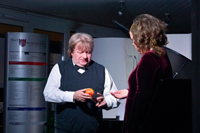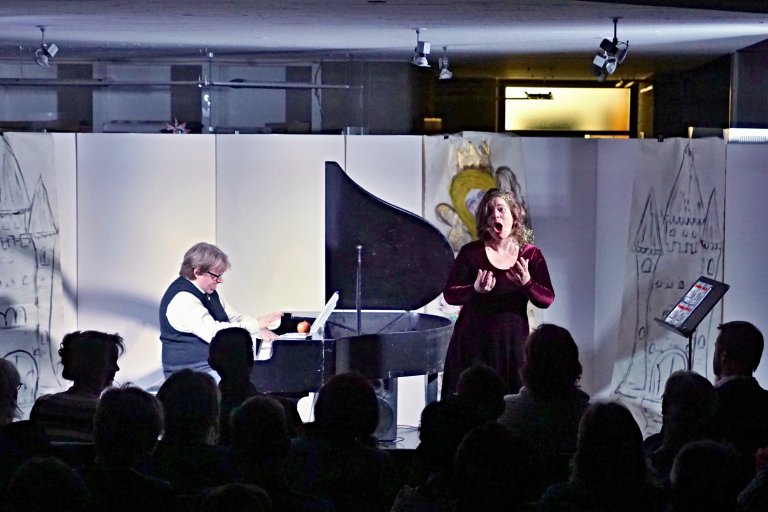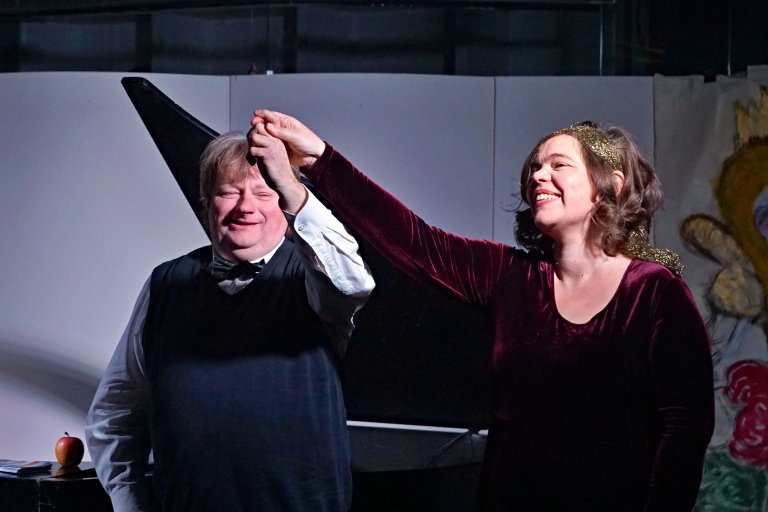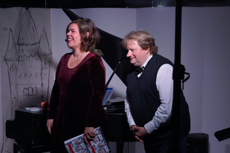 „Immer diese Märchen. Warum eigentlich? Weil wir sie lieben und brauchen sowie Musik und Gesang. Susanne Sommer, Mezzosopran und Martin Lüker am Klavier wissen Bescheid. Das Duo möchte in die Märchenwelt eintauchen. Der Tauchgang hält aber Strömungen parat, wonach beide Musiker an unterschiedlichen Stränden der Interpretation angelangen. Sommer und Lüker wollen über Märchen erzählen und singen, sich streiten über den Inhalt und dessen Bedeutung. Die Sängerin Susanne Sommer war in ihrem vorherigen Leben als Dornröschen tätig, wobei Lüker als 8. Zwerg lebte. Ein Dornröschen verdient nicht mehr so besonders vor allem dann, wenn der Prinz eine neue Lebensgefährtin hat. Was also tun? Man singt über Märchen, oder das, was man dafür hält. Gut, wenn man einen arbeitslosen Zwerg als Klavierbegleiter mitbringt, der zwar knurrig ist und erst auf Linie gebracht werden will, aber auf Grund der zu erwartenden Gage mitziehen muss. Dem Duo stellen sich folgende Fragen: Warum stechen sich Prinzessinnen ständig? Warum sind Zwerge besondere Wesen, die Königinnen betören und verstören? War der Jäger aus Kurpfalz auch Rotkäppchens Jäger? Außerdem, was hat George Gershwin mit den Gebrüdern Grimm zu tun oder Kurt Weill mit Aschenputtel? All das bleibt „märchenhaft verzwergt“. Freuen Sie sich auf einen Prinzessinnensoundcheck voll märchenhafter Musik, wo keine Äpfel stechen können und keine Erbse vergiftet ist, aber der Saft süß und bekömmlich bleibt. Wenn das man nicht ein Märchen ist?“